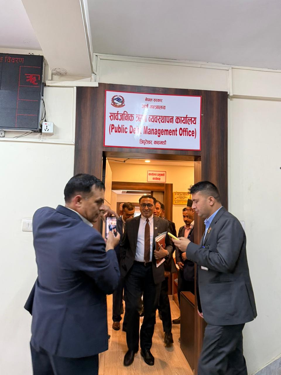मिति २०८२ चैत्र १६ गते माननीय अर्थ मन्त्री डा. स्वर्णिम वाग्लेज्यूको र अर्थ सचिव डा. धनश्याम उपाध्यायज्यूबाट कार्यलयको स्थलगत अनुगमन एवं निर्देशन ।